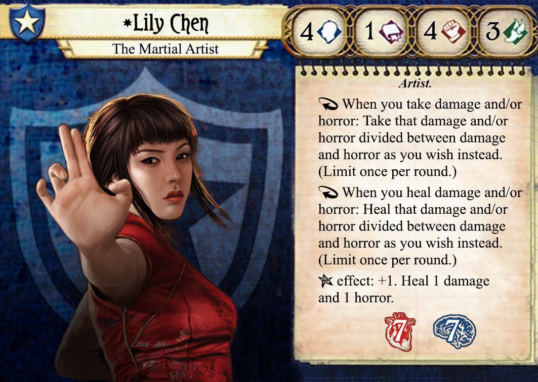 Lily chen, the martial artist, is a fictional character created by fantasy flight games for inclusion in their vision of h.p.